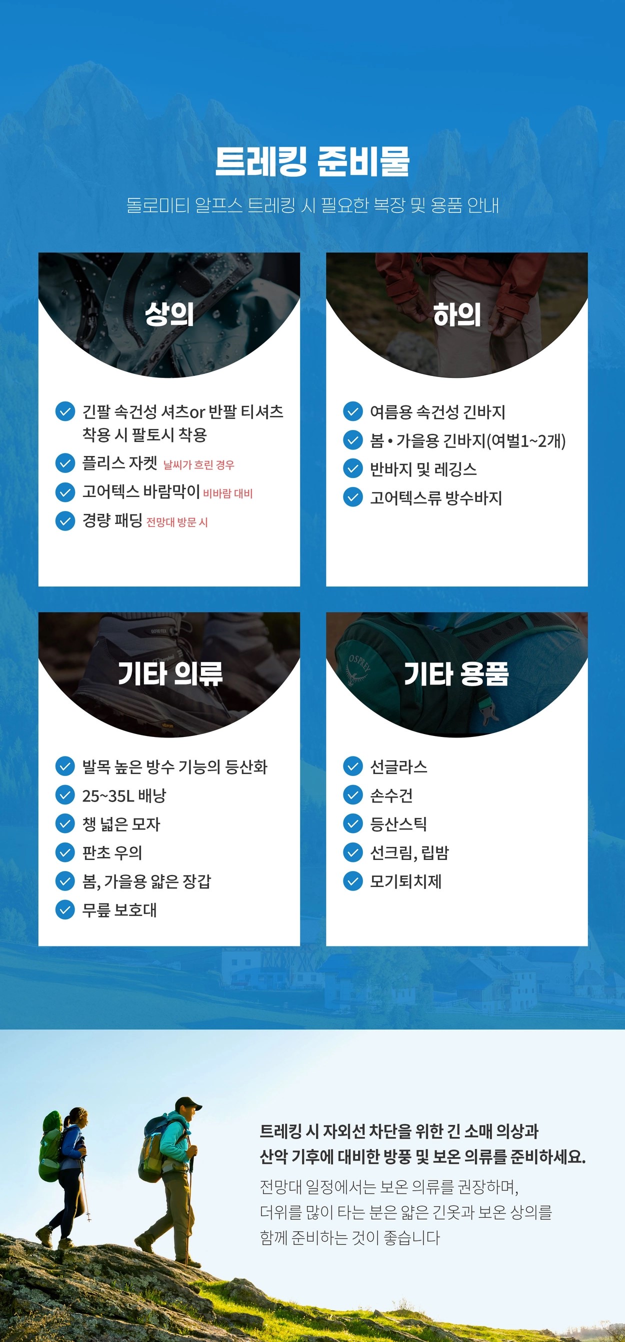 <돌로미티 트레킹 시 주의사항>
